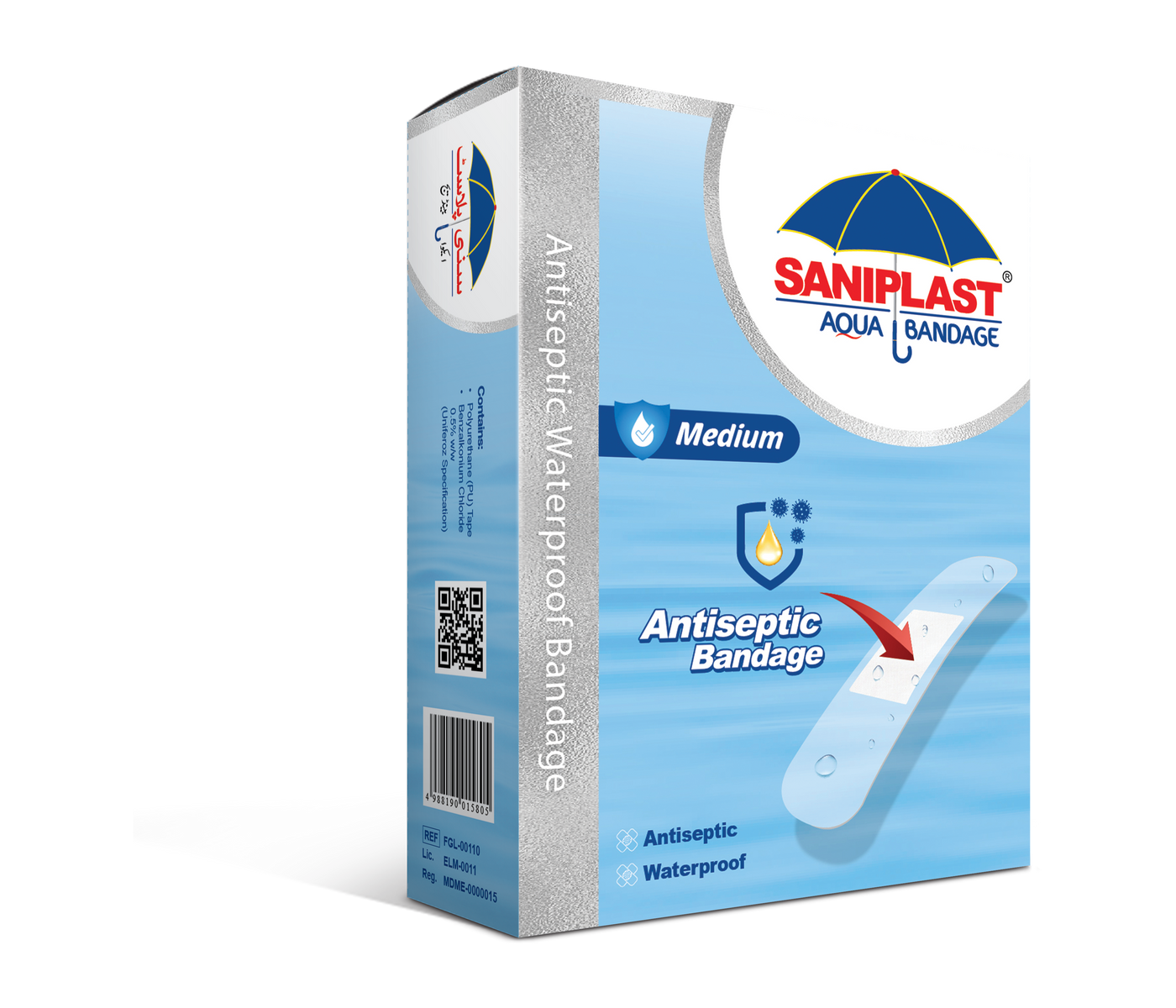 Embrace superior wound care with Saniplast Aqua's Medium Waterproof Bandages, available in a convenient 20-strip pack. These square-shaped bandages are perfect for covering and protecting minor wounds, providing a waterproof, antiseptic layer that stays in place so you can move freely. Each bandage is designed for all-day comfort, making it a must-have for every household in Pakistan. Get your hands on these essential Saniplast bandages today and enjoy peace of mind with every strip. The best Saniplast price in Pakistan, right here for you!